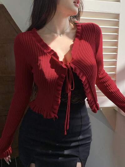 Women's Valentine's Day Frill Red Cardigan,Fall Clothes-43%