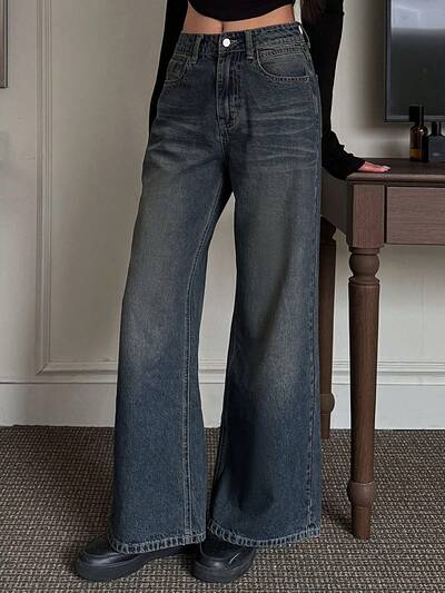 Women's Loose Fit Patchwork Wide Leg Washed Denim Jeans, Korean Style,Baggy Jeans Fall,Winter-43%