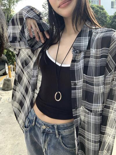 Women's Plaid Drop Shoulder Long Sleeve Single-Breasted Casual Shirt-48%