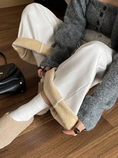 Women's White Thermal Lined Straight Leg Jeans, Casual Long Pants Thermal Lined,Winter-42%