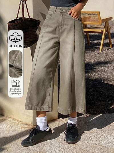 Plain Loose Denim Top And Wide Leg Jeans Set For Women,Fall Clothes,Back To School Clothes-26%