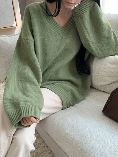 Women's Loose V-Neck Long Sleeve Sweater,Long Sleeve Tops,Fall Women Clothes