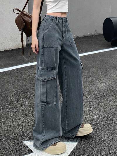 Women's Wide Leg Denim Pants With Pockets Women Jeans-42%
