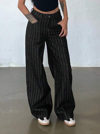 Women's Striped Loose Straight-Leg Casual Jeans-37%