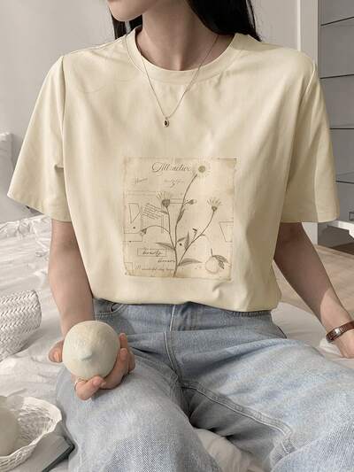 Spring New Loose Casual Plant Print Relaxed Women T-Shirt Graphic Tee-36%