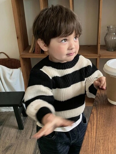 Toddler Boys' Casual Striped Crew Neck Loose Fit Knit Sweater, Autumn/Winter-67%
