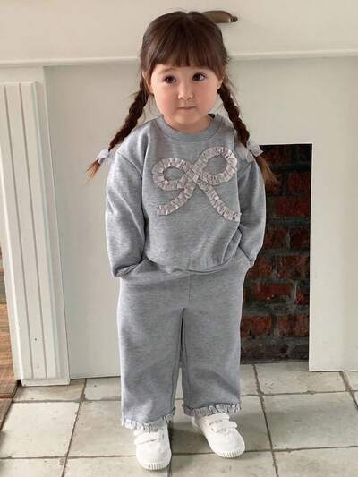 2pcs Baby Girls Crew Neck Bow Decor Long Sleeve Sweatshirt And Loose Fit Sweatpants Set Toddler Girls Clothes-55%