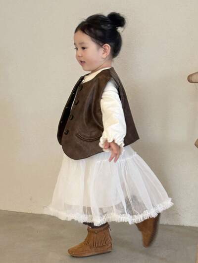 Baby Girl Round Neck Cap Sleeve Korean Style Mesh Patchwork Mid-Length Party Dress Fall, Winter Toddler Girls Clothes-41%