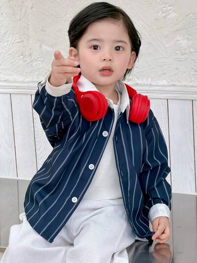 Toddler Boys' Casual Loose Fit Colorblock Striped Long Sleeve Shirt-68%