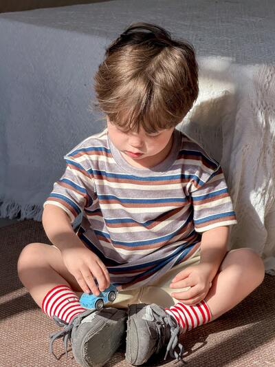 Toddler Boys' Round Neck Striped Casual Short Sleeve Top-55%