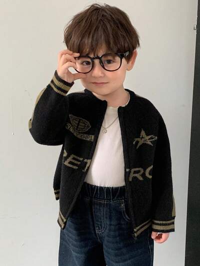 Toddler Boys' Round Neck Contrast Stripe Casual Long Sleeve Cardigan-55%