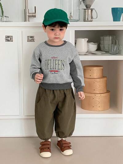 Toddler Boys' Round Neck English Letter Street Casual Long Sleeve Sweater-42%