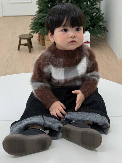 Baby Boy Contrast Stripe Korean Style Casual Long Sleeve Sweater Fall, Winter-42%