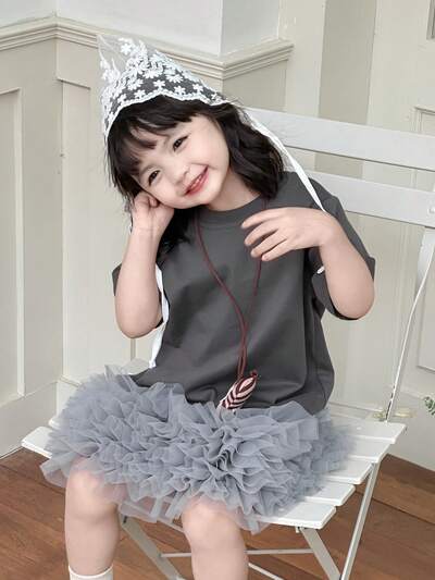 Toddler Girls' Round Neck Summer Mesh Patchwork Mid-Length Short Sleeve Dress-43%