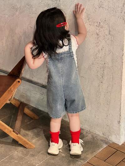 Toddler Girls Distressed Casual Loose Denim Bib Overalls, Cute For Summer-54%