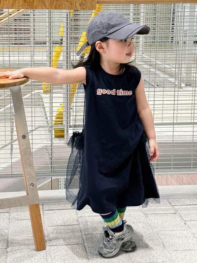 Toddler Girls' Round Neck Mesh Casual Letter Print Sleeveless Dress-42%