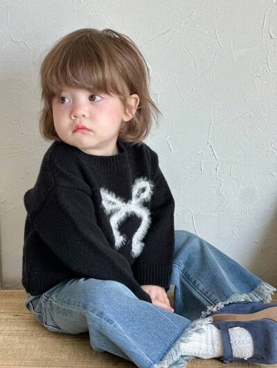Toddler Girls' Round Neck Bow Long Sleeve Sweater, Autumn/Winter-45%