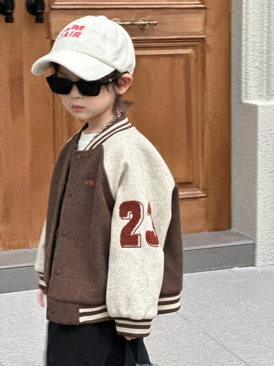 Kids Boys Casual Loose Fit Jacket With Embroidered Letter, Street Style, Autumn-59%