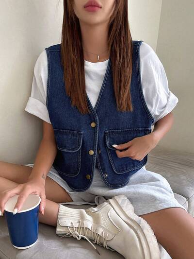 Flap Pocket Button Front Vest Denim Jacket