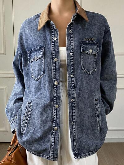 Women's Casual Denim Jacket With Contrast Collar, Autumn