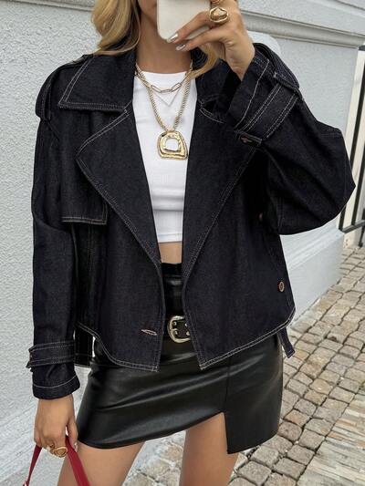Women's Oversized Collar Short Casual Denim Jacket