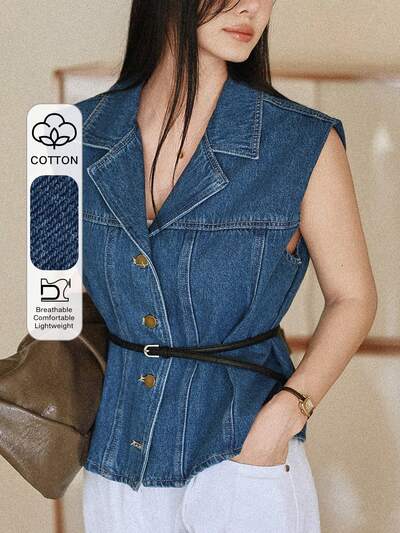 Women's Turndown Collar Sleeveless Short Casual Washed Denim Jacket