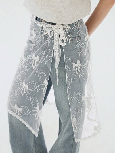 Women's Lace Patchwork Wrap-Style Maxi Skirt, Relaxed-Fit 2 In 1 Denim Pants-25%