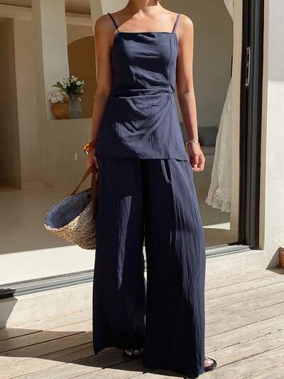 2pcs Women Casual Camisole Top And Wide Leg Pants Set, Slimming Lounge Sets For Women-45%