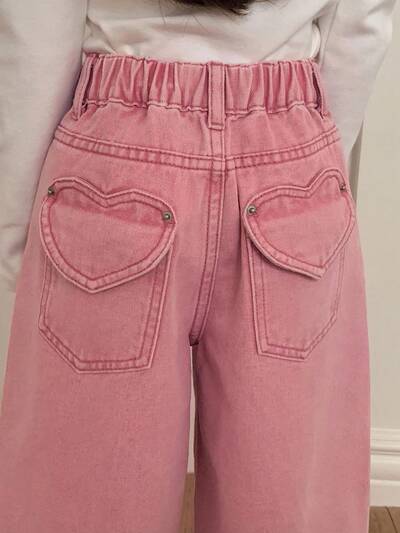 Young Girl Heart Pocket Elastic Waist Pink Casual Jeans Fall,Winter