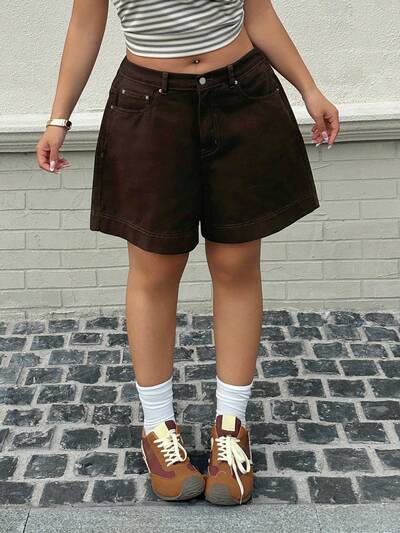 Dazy Plus Solid Color Casual Versatile Plain Denim Shorts, Plus Size Street Style For Women, Spring/Summer-47%