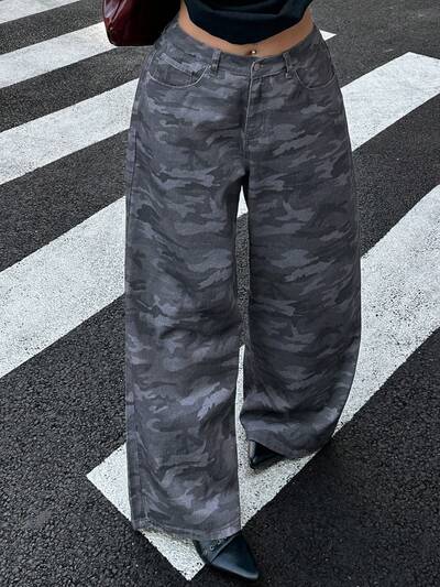 Dazy Plus Plus Size Women Camouflage Print Street Style Long Jeans, All Season Summer-40%