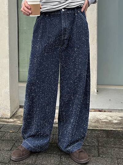 Spring Washed Blue Men's Pocket Wide Leg Loose Casual Jeans