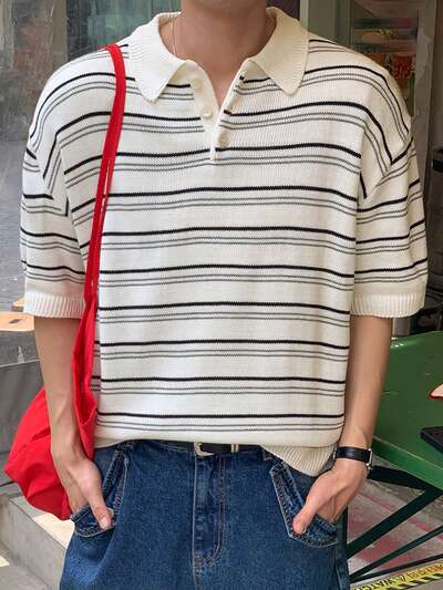 Men's Short Sleeve Striped Knit Top, Summer-39%