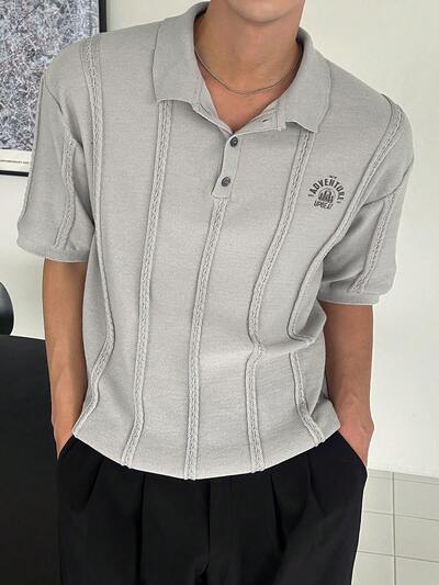 Men's Letter Print Grey Polo Collar Knit Top, Summer-58%