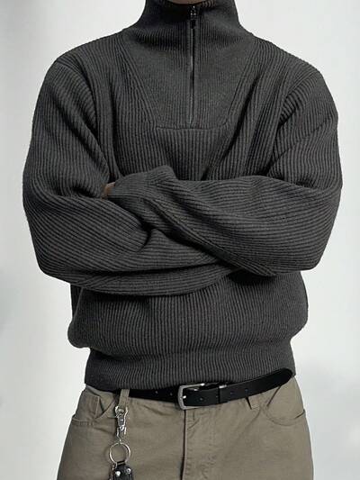 Men's Half-Zip Round Neck Knit Sweater, Autumn/Winter
