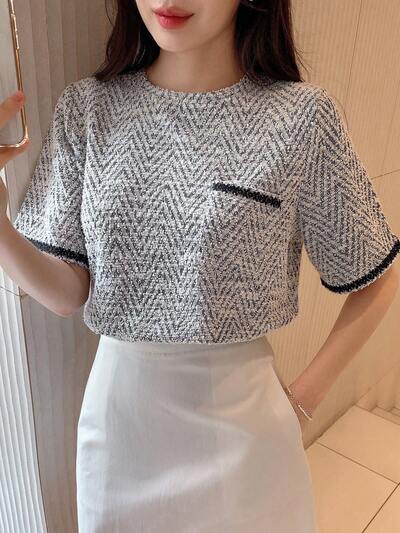Women's Embroidered Patchwork Herringbone T-Shirt-44%