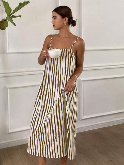1pc Women Striped Casual Slip Dress Maxi Dress-49%