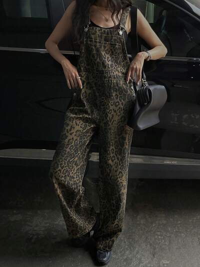 Leopard Print Denim Overalls Without Tank Top Y2k-37%