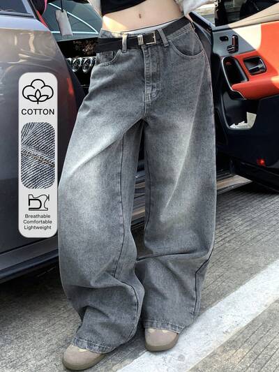 Women Casual Washed Vintage Wide Leg Baggy Jeans