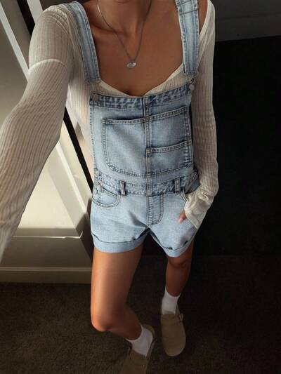 Women's Casual Distressed Washed Denim Bib Overalls, Autumn-35%
