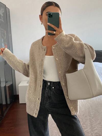 Women's Loose Business Casual Solid Color Minimalist Knit Cardigan, Autumn/Winter-44%