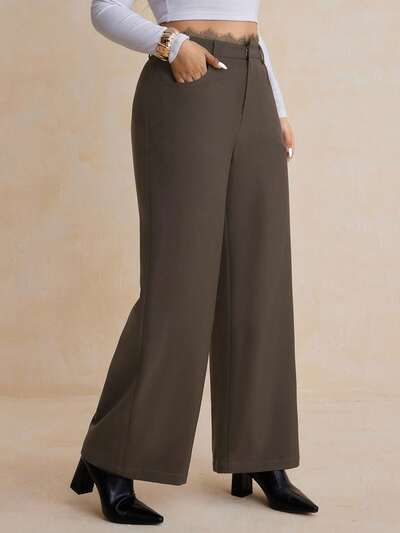 Dazy Plus Plus Size Women's Casual Loose Straight Leg Pants With Lace Waistband, All Season Women Dress Pants Fall-46%