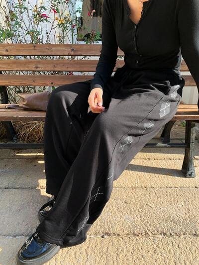 Dazy Plus Plus Size Letter Embroidery Drawstring Waist Casual Sweatpants-69%