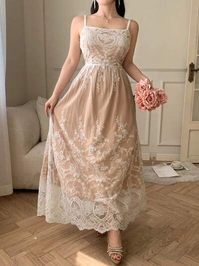 SHEIN X Hannahelzahed New Summer Music Festival Elegant Ombre Floral Printed Sundress For Women