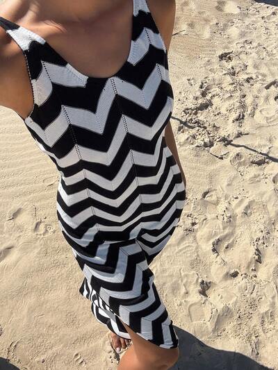 Women's Perforated Knitted Gradient Color Dress, Resort Style, Summer Maxi Dress Cruise Outfit For Women