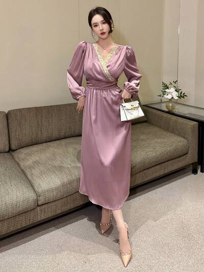 Women's Satin Elegant Party Midi Dress, Spring/Fall,Formal Women Dresses Long Sleeve Dress Prom Dress-23%