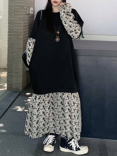 Women's Round Neck Long Sleeve 2 In 1 Patchwork Casual Elegant Dress Maxi Dress-23%
