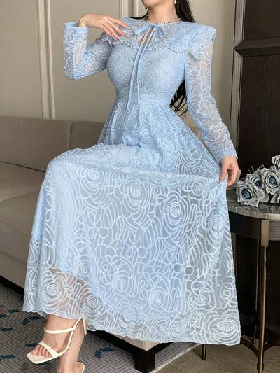 Elegant French Lace Dress, Waist Cinching, Flattering, High-End Look Maxi Dress Sundress-65%