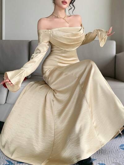 Women's Satin Elegant Long Dress Off The Shoulder-69%