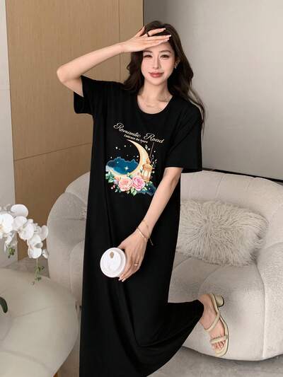 Women's Casual Printed Round Neck Short Sleeve Long Dress Wedding Guest Dress Summer Sundress-23%